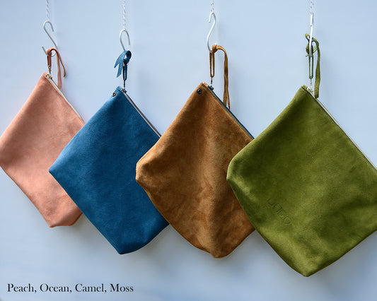 Leather Suede Zip Pouch Insert, Suede Pouch